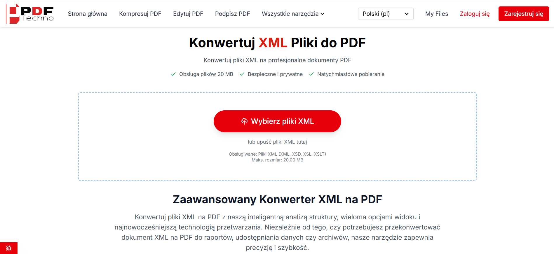 Jak Przekonwertować XML na PDF Online Za Darmo z PDFTechno